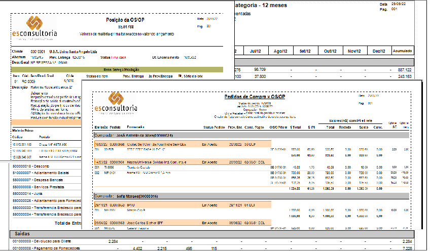 E acompanhe a posição de sua OS/OP através de relatórios comparativos de previsto x realizado