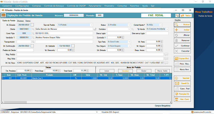No ESGestão, você faz a abertura de OS/OP a partir do pedido de venda, podendo lançar a previsão de consumo de materiais com base em estrutura de produto pré-cadastrada ou importando a previsão de consumo de outra OS/OP.