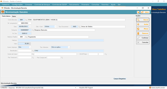 No ESGestão, as entradas e saídas de notas fiscais já geram o seu contas a pagar e a receber, e os pedidos de compra e pedidos de venda em aberto são exibidos como previsões de pagamento e recebimento nos relatórios de posicionamento, deixando seu fluxo de caixa atualizado com pouco esforço, além de permitir o lançamento de títulos e movimentações de tesouraria avulsos.